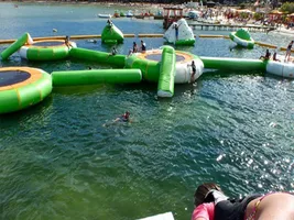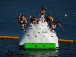 Situado en Port Maguide, en el lago de Biscarrosse, el Aquapark le da la bienvenida todos los días de junio a septiembre. ¡Un buen equipo te está esperando! Solo, en familia o con amigos, venga a divertirse en el AquaPark equipado con camas elásticas, columpios, tobogán gigante, muro de escalada, recorrido y catapulta gigante..... El parque está abierto a niños a partir de 8 años.
