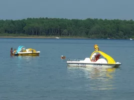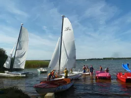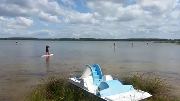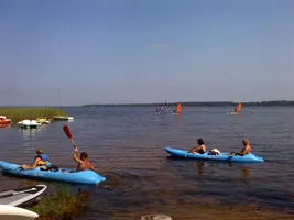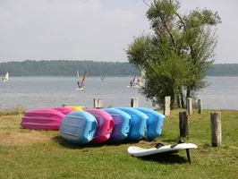 Bienvenido al sitio de actividades náuticas instalado en Plage des Bardets, en el lago Sanguinet...