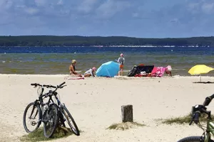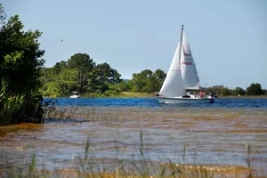 En Navarrosse, el agua del lago de Biscarrosse tiene menos de 1 metro de profundidad a lo largo de 100 metros, lo que lo hace especialmente adecuado para los niños pequeños. En verano, el agua oscila entre los 24° y los 28°, lo que lo convierte en un auténtico paraíso para niños y padres. Las playas del lago son fácilmente accesibles gracias a los numerosos aparcamientos (de pago en verano) que bordean el lago.