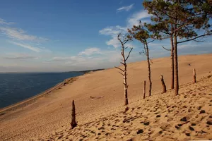 Nada más llegar, la Duna del Pilat le impresionará por su tamaño, 110 m de altura, 2,9 km de longitud, 616 m de anchura, 55 millones de m3 de arena.