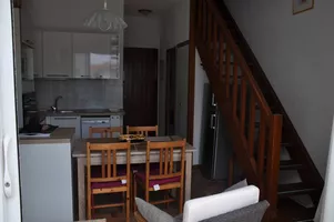 En una pequeña residencia de Biscarrosse plage, a 300 m de la playa y a 300 m de los comercios, le propongo alojarse en este piso dúplex con 2 habitaciones en la planta superior.