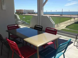 Con una vista sin obstáculos del océano, este amplio piso de 85 m² situado en la 3ª planta de una residencia reciente con una gran terraza de 25 m² ofrece un servicio único frente a la playa central de Biscarrosse. De pie con los pies en el agua.
