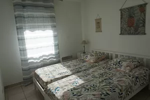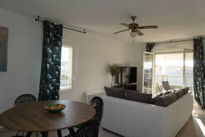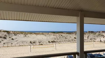 Precioso piso situado en la 2ª y última planta de una pequeña residencia con piscina (abierta en temporada) frente a la playa sur, con una hermosa vista sobre el océano.