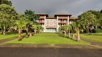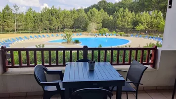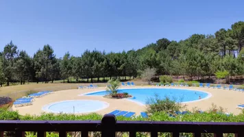A sólo 500 m del lago, con playas ideales para holgazanear, y del Aquapark. Restaurantes y bar, a 10 km de la playa y sus magníficas olas, el entorno de la residencia es tranquilo en medio de los pinos y frente al campo de golf.