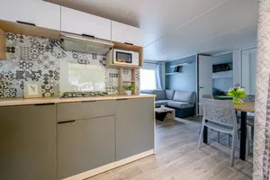 Hay diferentes tipos de alojamiento disponibles, parcelas de camping, alquiler de casas móviles, bungalows de lona o chalets. Las casas móviles están todas equipadas con una terraza cubierta y aire acondicionado y algunas pueden alojar hasta 10 personas.