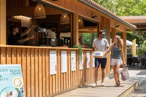 A 1 km del centro de Sanguinet, podrá disfrutar fácilmente de los comercios y de la animación del pueblo. Disfrute de este entorno privilegiado y venga a descubrir nuestra región a través de sus famosos lugares y su gastronomía. Las parcelas tienen acceso directo a la playa del lago. Posibilidad de alquilar por noche contactando directamente con el camping.