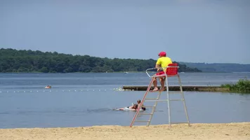 En un entorno tranquilo, este camping municipal con 249 parcelas y un ambiente familiar, le ofrece la oportunidad de disfrutar de su piscina, acceso directo al lago con una playa de arena con zona de baño vigilada, un puerto deportivo y carriles bici.