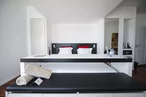 Y si quiere un toque extra de originalidad, pida una habitación premium, con una bañera sobre el suelo situada a los pies de su cama.