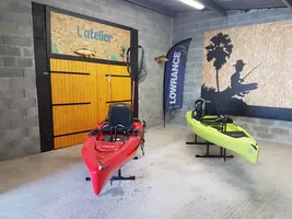 Tienda de pesca y caza, kayaks con motor Hobie, tubos flotadores, aparejos de pesca, buscadores de profundidad, tarjetas de pesca, accesorios.