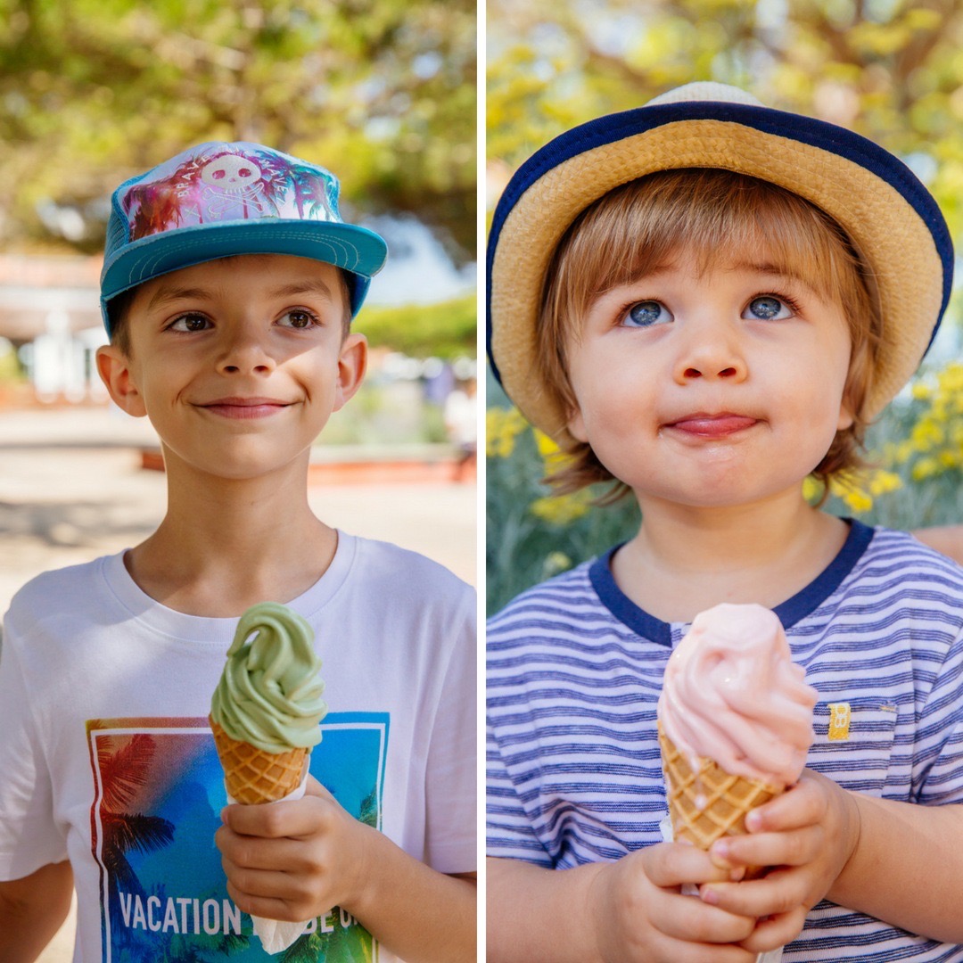 Avant de partir, on se laisse tenter par les manèges à Biscarrosse Plage… Auto-tamponneuses pour Arnaud et Evan, et pêche aux canards pour Gianni : un super moment tous les quatre ! C’est déjà l’heure du goûter ! On craque pour une glace à l’italienne à la Maison Rody. Un vrai délice à déguster à l’ombre des arbres sur la Place Dufau !