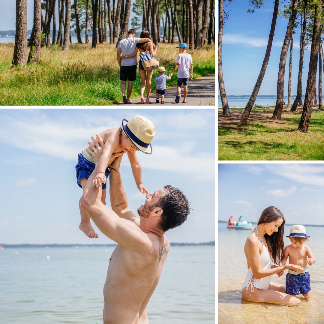 C’est l’heure de la plage ! On étale nos serviettes sur le sable blanc des Grands Lacs… Les petits en profitent pour jouer sur la plage. Il fait chaud, on part se baigner en famille. Evan le petit joueur en profite pour nous arroser… Un moment inoubliable en famille sur les Grands Lacs !