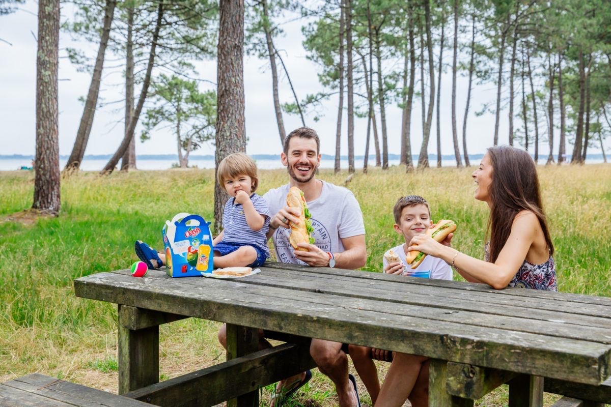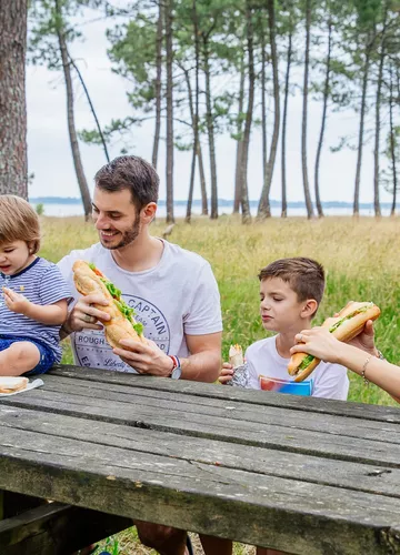 Après l’effort, le réconfort… On part en famille pique-niquer sous les pins, avec vue sur le Lac et dans nos paniers plein de bonnes choses de chez FLO’rilège de Saveurs à Sanguinet. Ce snack familial propose des produits maisons délicieux (salades, sandwichs, plats chauds, paninis…). L’idéal à emporter en pique-nique !