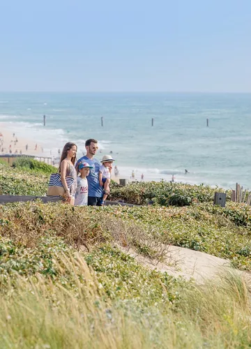 Le soleil commence à se coucher… On termine la journée en beauté avec une balade sur l’esplanade au-dessus de la Plage Centrale. La fin d’une belle journée en famille à Bisca Grands Lacs !