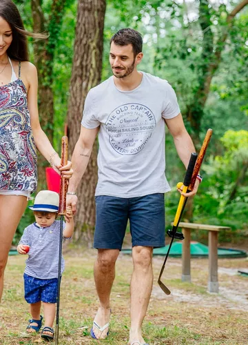 C’est parti pour une journée en famille à Bisca Grands Lacs ! Première étape : le mini-golf, une première pour les petits qui n’ont jamais testé ! Ils sont ravis ! En face du Lac de Maguide à Biscarrosse nous attend un parcours en forêt de 18 pistes. Avant de commencer on s’équipe de balles et de clubs, mention spéciale pour le mini-club spécial enfants ! Porte de château, roue de moulin, circuit karting… On s’amuse à faire le parcours le plus rapidement possible. Quelques fois, c’est même plus facile pour Evan et Gianni que pour nous… ?