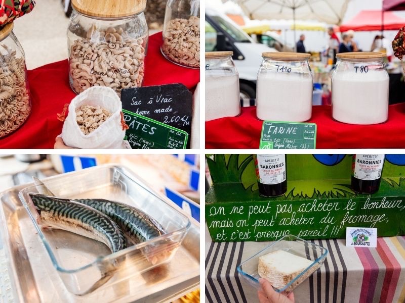 Les traiteurs du marché sont ravis de nous voir arriver avec nos contenants et bocaux pour les plats en sauces. On termine cette matinée au marché en faisant le plein de féculents : pâtes et farines bio ! En partant, on ne peut pas s’empêcher de craquer pour un beau morceau de fromage des Pyrénées : une valeur sûre ! 🧀 Les nombreux échanges avec les commerçants ont rendu ce moment encore plus sympa.