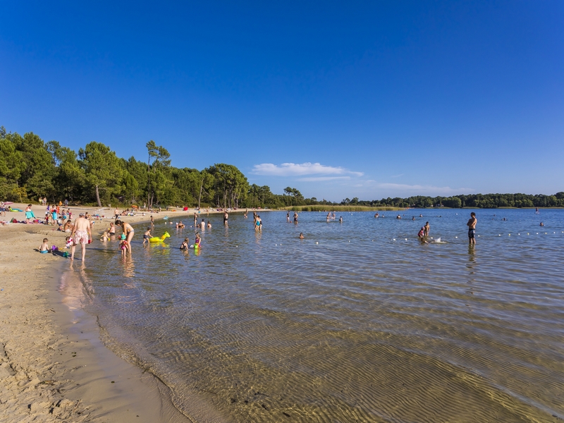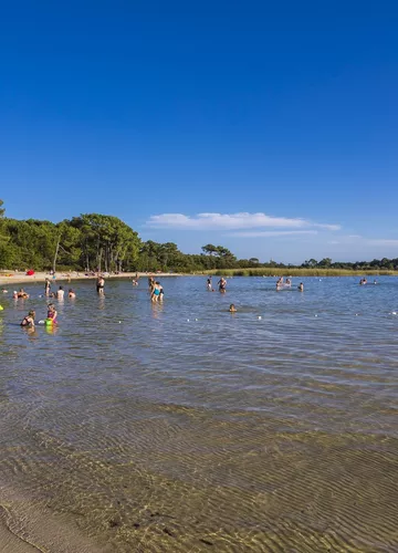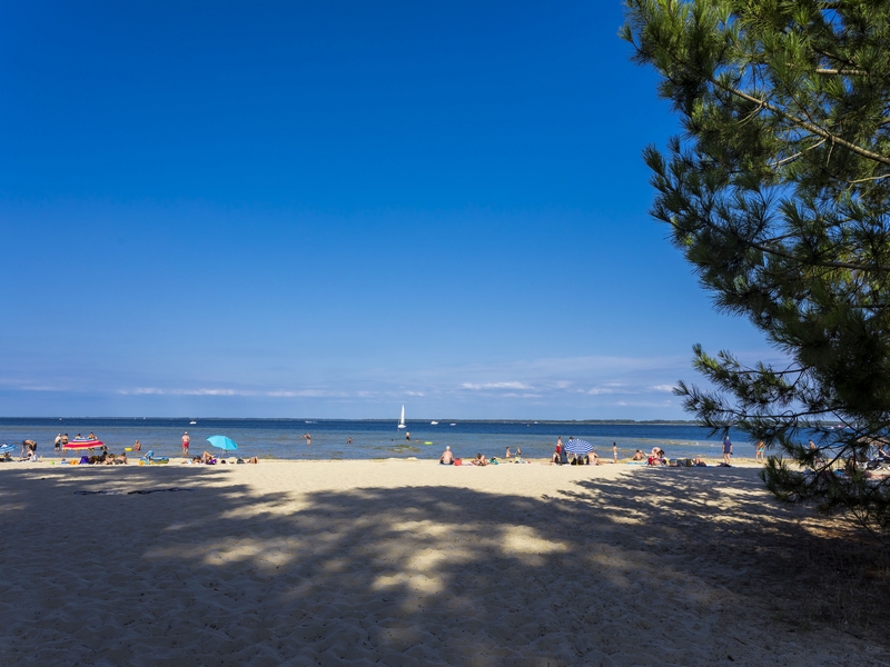 Bordée par les pins, vous pourrez vous installer à l’ombre des arbres et profiter de l’eau douce du Lac Nord (Cazaux-Sanguinet-Biscarrosse). Les eaux peu profondes, la plage ombragée et la baignade surveillée en font la plage rêvée des familles. Loin des vagues de l'Océan Atlantique, ici, les plus petits pourront barboter en toute quiétude sous les yeux amusés (mais vigilants) des parents (ou des grands-parents) 👀