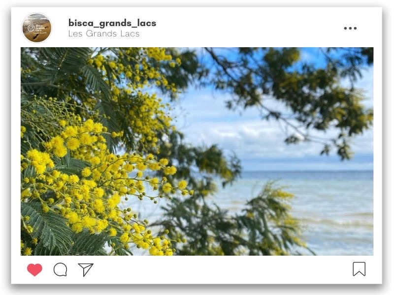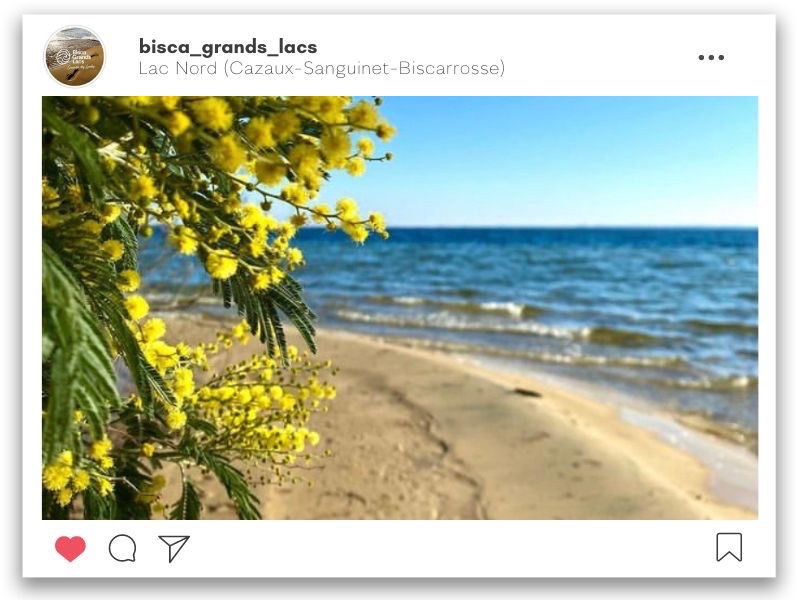 La saison du mimosa est fantastique dans les Landes ! Alors quand il pousse près de nos Grands Lacs... on assiste à un spectacle incroyable de teintes jaunes et de nuances de bleu. Cette photo remporte haut la main la médaille d'or de vos photos préférées !