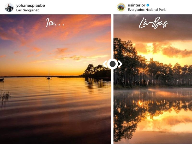 Parce qu'il n'est pas nécessaire de partir à l’autre bout du monde pour être dépaysé… Découvrez nos 10 paysages aux airs d'ailleurs à Bisca Grands Lacs ! Partez en Californie, en Namibie ou encore dans des îles paradisiaques... sans quitter Biscarrosse et les Grands Lacs ! Faites vos valises, on vous emmène aux quatre coins du monde 🧳🌎