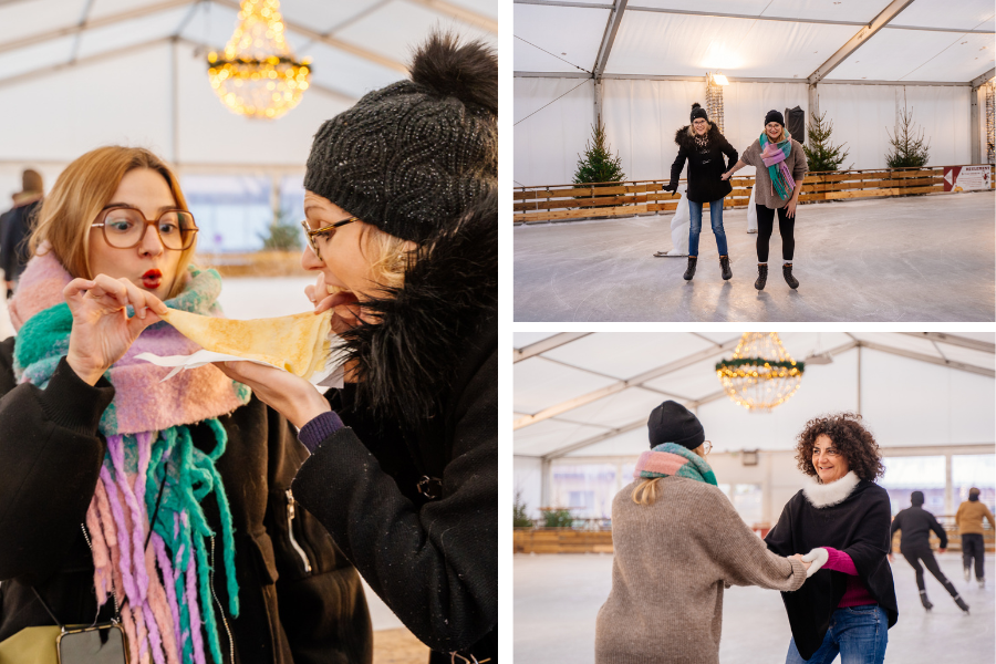 Croisés, pirouettes ou glissades sur les fesses… Sur l’échelle “Philippe Candeloro”, Perrine et moi, on n’est pas montées bien haut. Mais ce n’est pas le cas de Caroline, notre collègue de votre Office de Tourisme (préféré), qui a su nous en mettre plein la vue avec son niveau de patinage ! Après quelques tours, quelques fou-rires (et quelques chutes), on peut vous donner notre conclusion : peu importe l'âge et le niveau, à la patinoire, tout le monde a la garantie de s'amuser ! 🤪