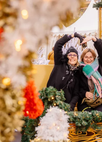 Un petit creux ? On s’est vite dirigées vers le marché de Noël gourmand, près de la patinoire. Crêpes, gaufres, sucreries de Noël, chocolat chaud... 🍭 Il y a tout ce qu’il faut pour se réchauffer. Autant vous dire qu’ici, on n’a pas lutté bien longtemps pour résister à la tentation. “Deux crêpes et deux vins chauds*, s'il-vous-plaît !” “On s’installe où ?” “Ici, c’est parfait !” Avec Perrine, c’est une des parties qu’on a préférée ! 😍