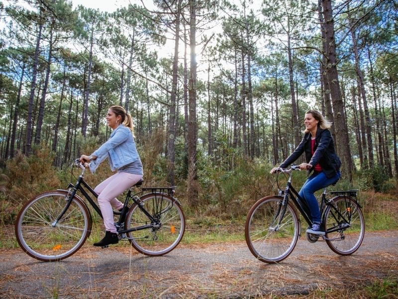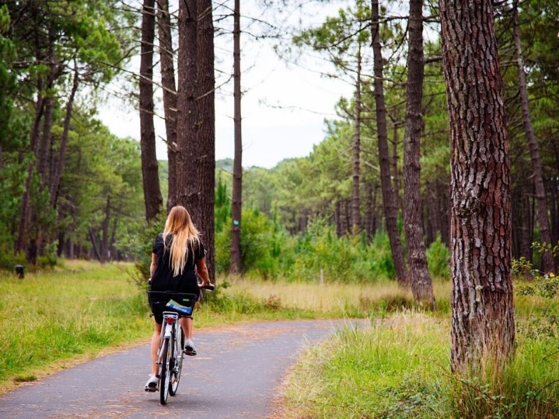 À Bisca Grands Lacs, montez à bicyclette et découvrez le territoire à vélo au rythme des paysages sauvages : forêts, lacs, océan, plages…