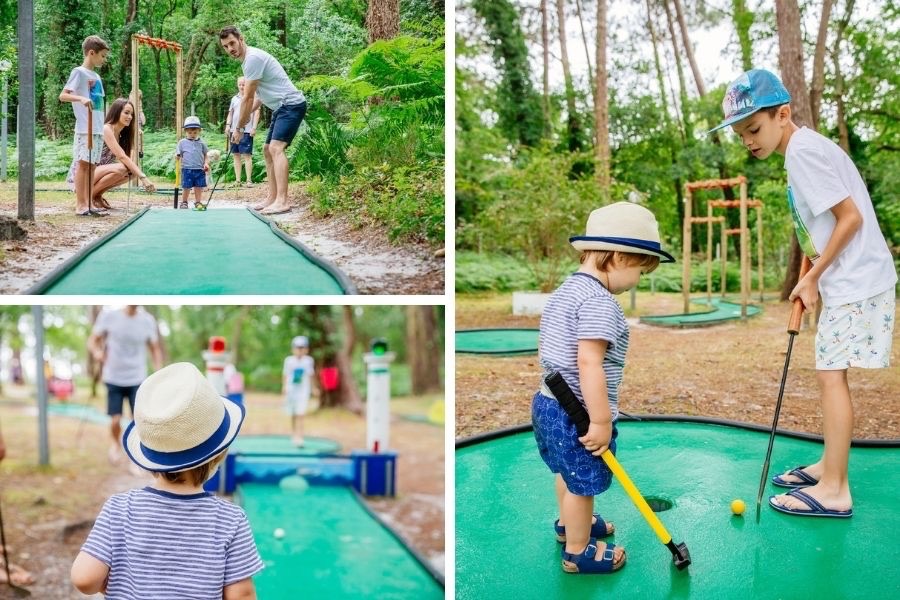 - Mini Golf de Maguide à Biscarrosse Lac : 18 trous face au lac de Biscarrosse-Sanguinet dans un espace ombragé entouré d’arbres. Sur place, vous trouverez un snack pour vous restaurer après une partie endiablée !