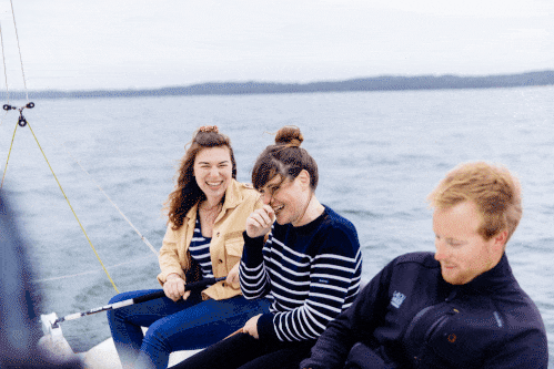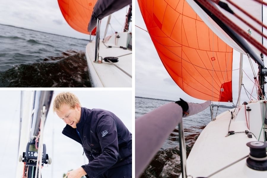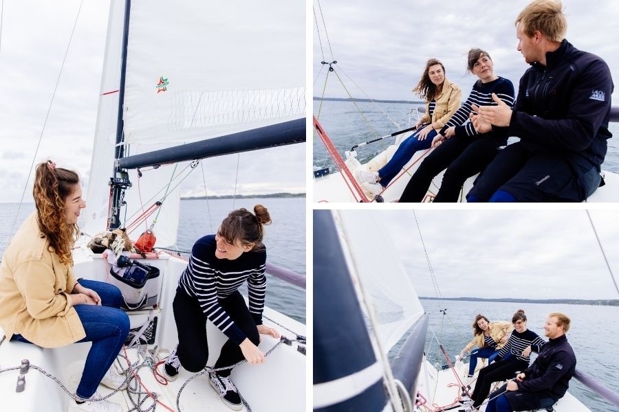 Les cheveux au vent, on se voit déjà braver la houle en solitaire au prochain Vendée Globe ! Mais Quentin nous ramène vite à la réalité. Si nous savons hisser le spi ? Évidemment que oui… 🙄 Nous voilà parties pour cette toute nouvelle expérience à bord !