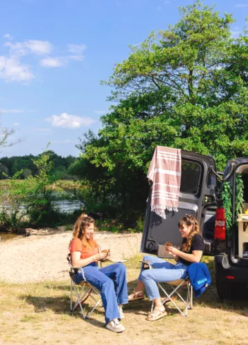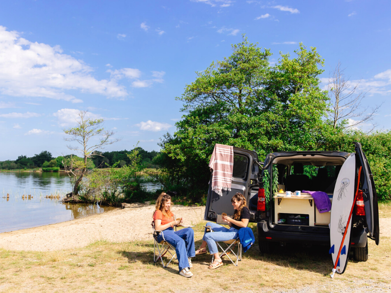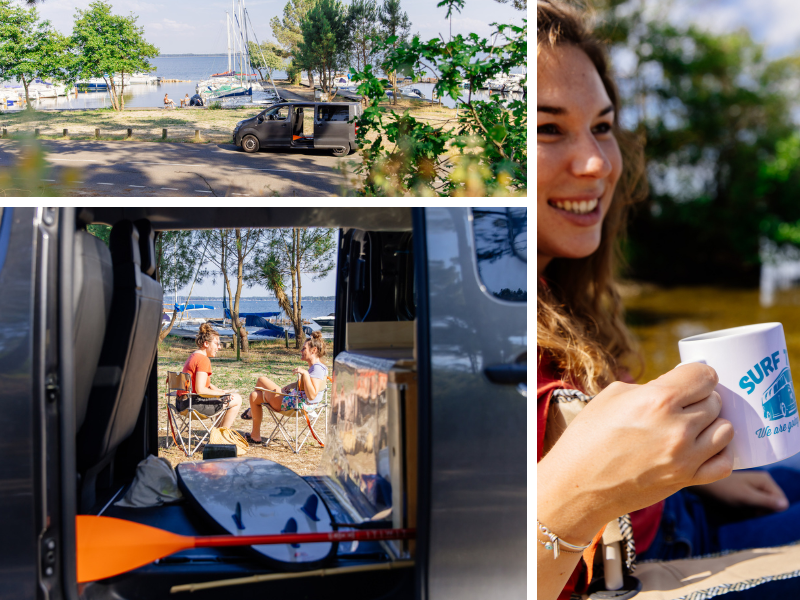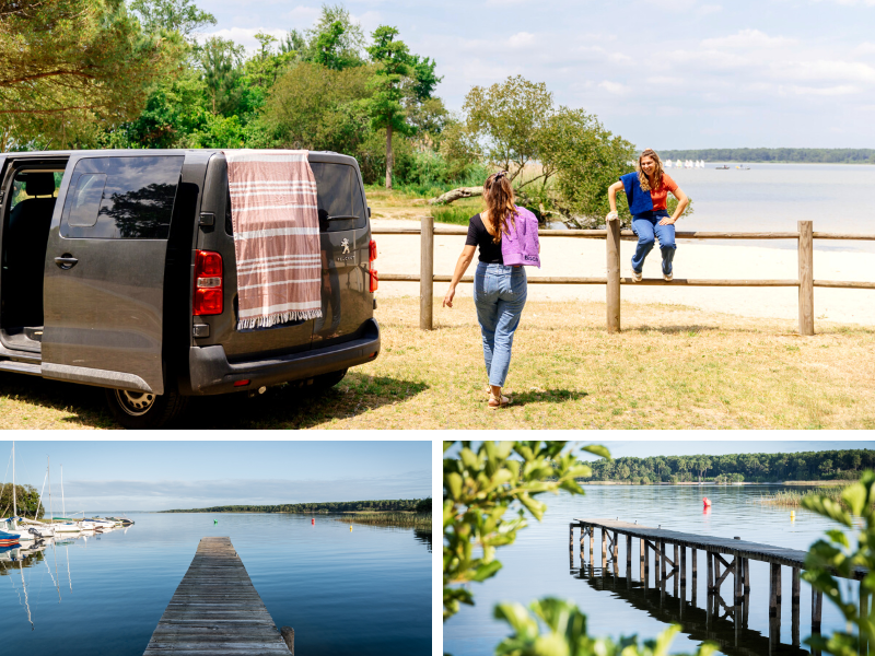Avec Morgane, on a pris la route en van (ça rime) ! On a ouvert les fenêtres et on s’est laissées porter par l’air iodé, les effluves des forêts de pins et le scintillement du soleil sur les lacs. Ça fait rêver hein ? On dit que ça ressemble à la Californie… et si c’était la Californie qui ressemblait à Bisca Grands Lacs ? ❣️
