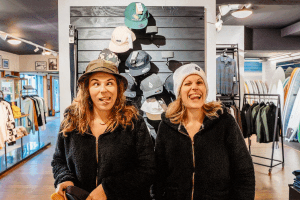 16:30 - Ne reste (presque) plus que le petit frère à gâter ! Direction Biscarrosse-Plage, à La Vigie Maison du Surf. Vous le savez maintenant, le surf et nous, c’est une vraie histoire d’amour (quand la mer n’est pas trop agitée 😅). La Vigie, c’est le paradis des dadas de la vague : planches, skates, combinaisons, sweats, casquettes, bonnets, ponchos de sortie de bain… On a envie de tout essayer ! Une fois équipées, on est fin prêtes pour concurrencer les plus grands. 💪 À vos marques, prêts, glissez ! 🏄 On aurait presque oublié de trouver LA pépite à glisser sous le sapin. 😅