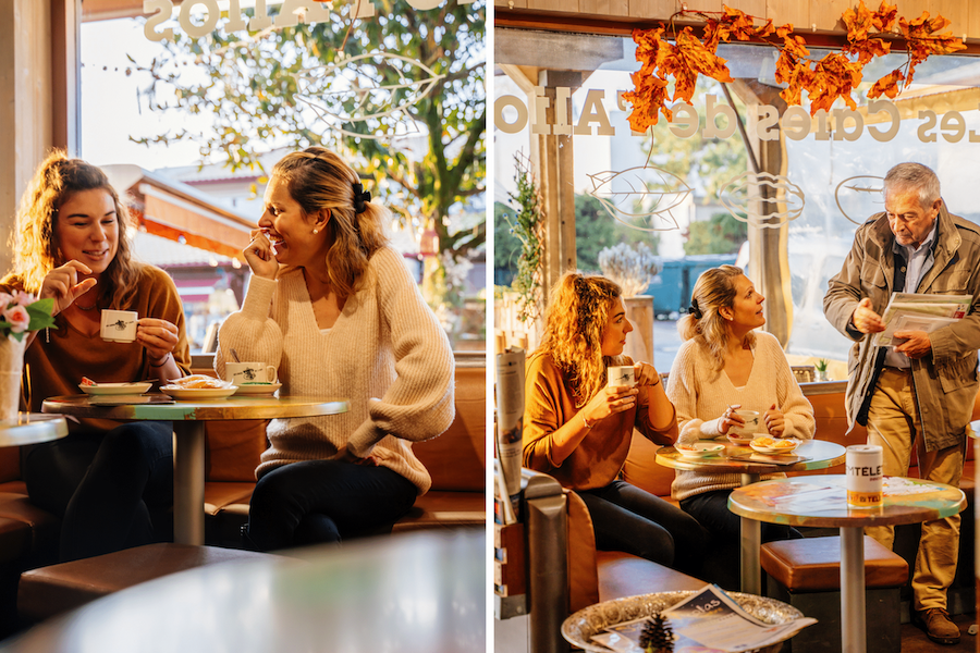08:00 - On débute la journée par un petit tour au Café de l'Alios. ☕ Connu pour être un véritable lieu de rendez-vous chez les biscarrossais, nous n’avons pas échappé à la règle ! Sabine y a croisé des amis de looongue date comme le pharmacien de la ville, une vraie figure locale. 😄 Après avoir reçu quelques conseils sur les bonnes adresses à ne pas manquer, nous voilà parties vadrouiller !