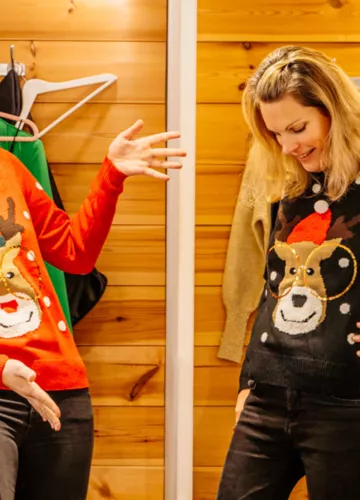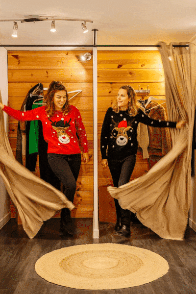 09:30 - Premier arrêt obligatoire dans la boutique O'Dressing où nous n’avons (comme toujours) pas pu résister à l’envie de tout essayer… 🤭 C’est parti pour un défilé haut en couleurs sous l'œil avisé d’Aurore ! Nous avons craqué pour 3 tenues : une avec des pulls de Noël, une autre pour le réveillon de Noël et la dernière pour le Nouvel An. Nous voilà parées pour briller de mille feux ! 🌟