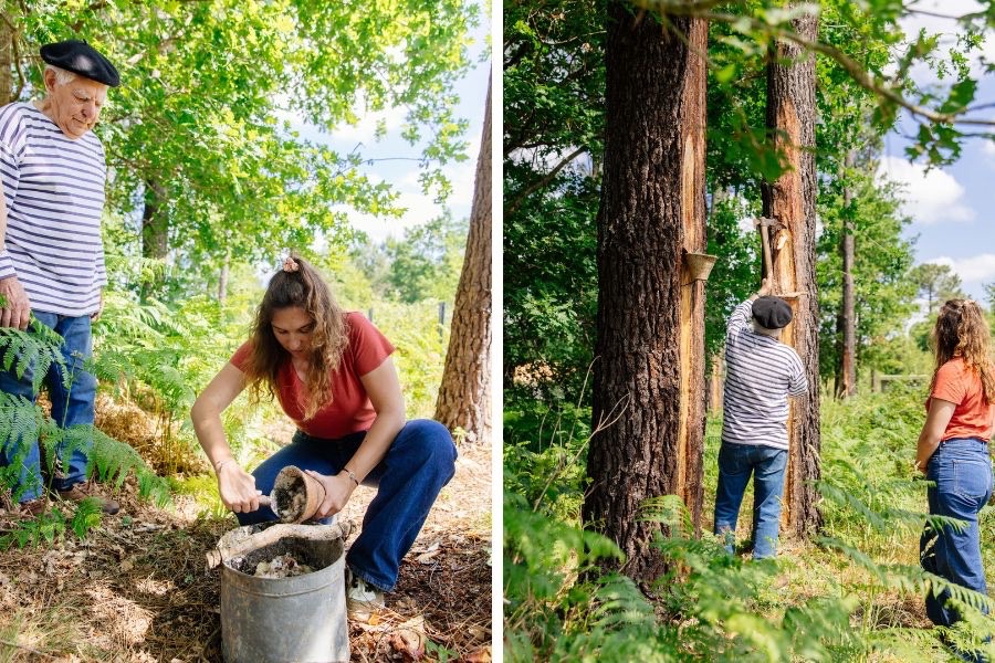 Eh oui Jamy, c’est dans la célèbre forêt du Sud-Ouest de la France, tout près de Biscarrosse, que les résiniers et forgerons-taillandiers perpétuent le savoir-faire historique du gemmage des pins. ⛏️