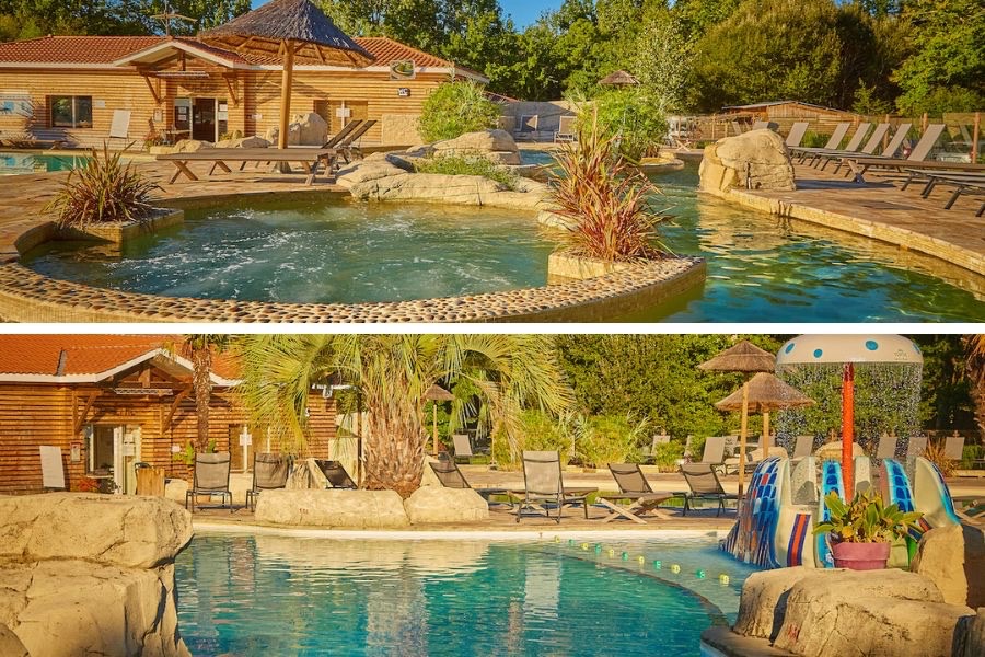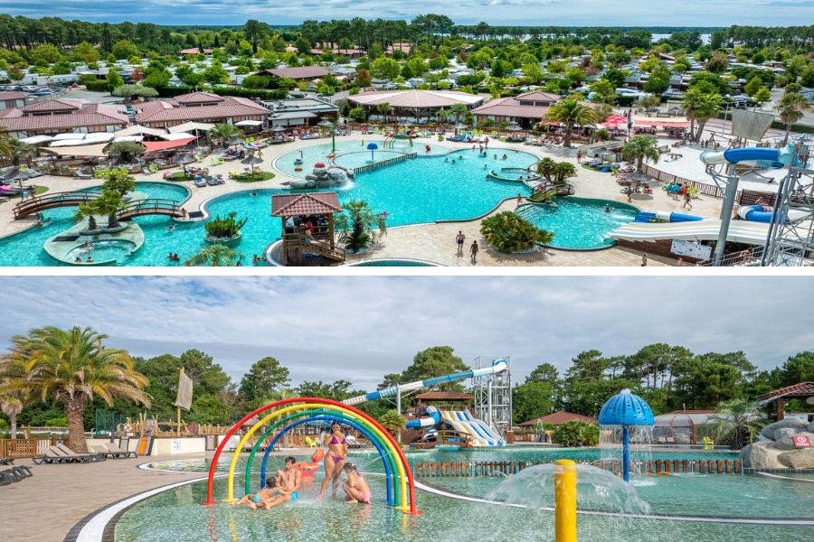 ⭐️ Notre avis : accès à la plage du lac en 3 minutes, spa et jeux aquatiques pour enfants, le tout au milieu des Landes… C’est le pied !