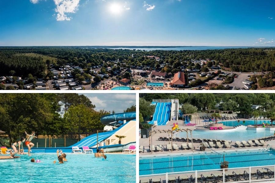 ⭐️ Notre avis : un camping calme, à deux pas du lac de Sanguinet ! Le dôme du parc aquatique est idéal pour les enfants.
