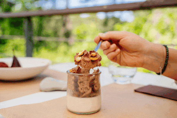 Une fois notre seau de balles vide, on retourne au Club House pour reprendre des forces au restaurant du Golf de Biscarrosse, le Parcours Gourmand ! On s’installe en terrasse, pour profiter de la vue sur la forêt des Landes et les parcours. Après un coup d'œil à la carte, le menu “Retour du marché”, avec entrée-plat-dessert, nous séduit. On va vous en prendre deux, s’il-vous-plaît ! Pendant qu’on attend notre plat, on observe les expérimentés sur le parcours 18 trous. Vite, Camille, prends des notes, les experts du golf sont à Biscarrosse ! 😱