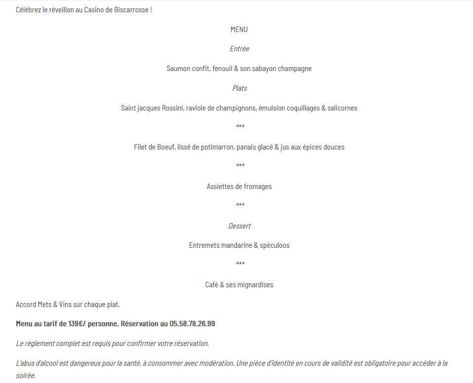 Découvrez les premiers menus de Noël et du Nouvel An concoctés par les chefs des restaurants de Biscarrosse et alentours... 🥂