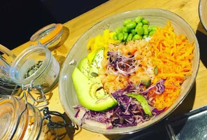 Restaurante de comida sana, poke bowl, hamburguesa, ensalada, ceviche, tartar, Acai, bar de zumos y helados a la plancha. Venga a disfrutar de un momento de descubrimiento culinario en un entorno agradable y una cálida bienvenida.