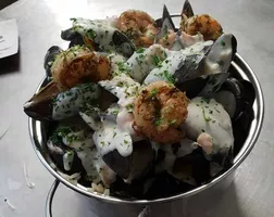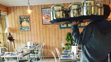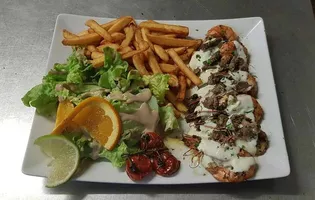 Déjese tentar por sus especialidades de mejillones, gambas, tallarines o incluso pollo cocinado con todas sus salsas caseras, o por sus parrilladas o incluso por su camembert asado. Todos los platos se pueden comer dentro o para llevar.