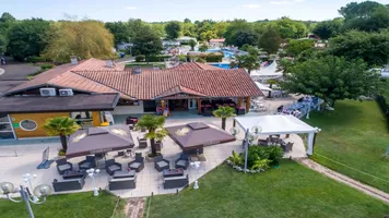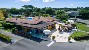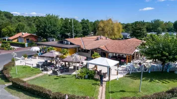 El restaurante está situado a la entrada del camping Les Ecureuils en Biscarrosse Lac, y está abierto al público fuera del camping.